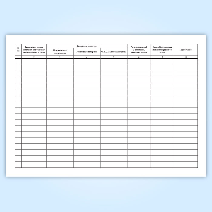 Журнал учета заявлений на установку рекламных конструкций в Сочи купить