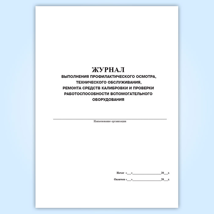 Журнал выполнения профилактического осмотра, технического обслуживания, ремонта средств калибровки и проверки работоспособности вспомогательного оборудования в Сочи купить