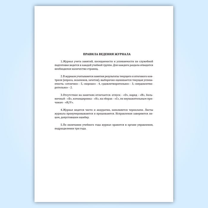 Журнал учета занятий, посещаемости и успеваемости личного состава в системе служебной подготовки в Сочи купить