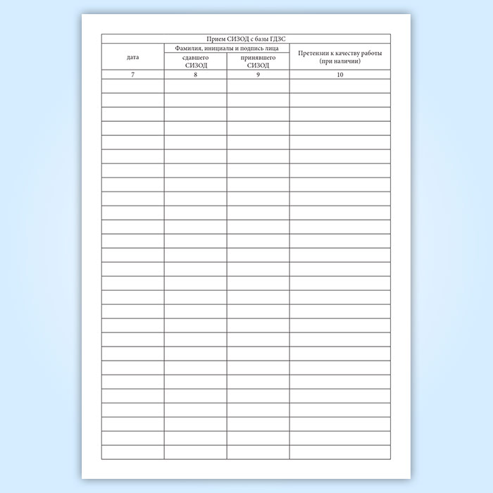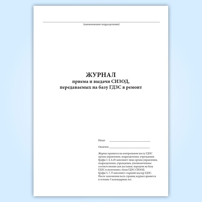 Журнал приема и выдачи СИЗОД, передаваемых на базу ГДЗС в ремонт в Сочи купить