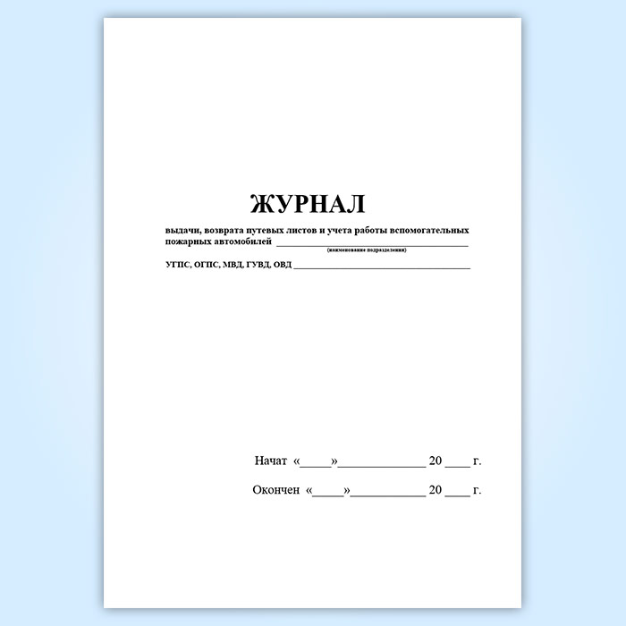 Журнал выдачи, возврата путевых листов и учета работы вспомогательных пожарных автомобилей в Сочи купить