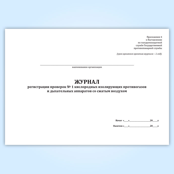 Журнал регистрации проверок № 1 кислородных изолирующих противогазов и дыхательных аппаратов со сжатым воздухом в Сочи купить