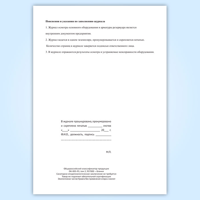 Журнал осмотра основного оборудования и арматуры резервуара (нефтепродукты) в Сочи купить