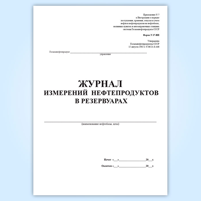 Журнал измерений нефтепродуктов в резервуарах (форма 17-НП) в Сочи купить
