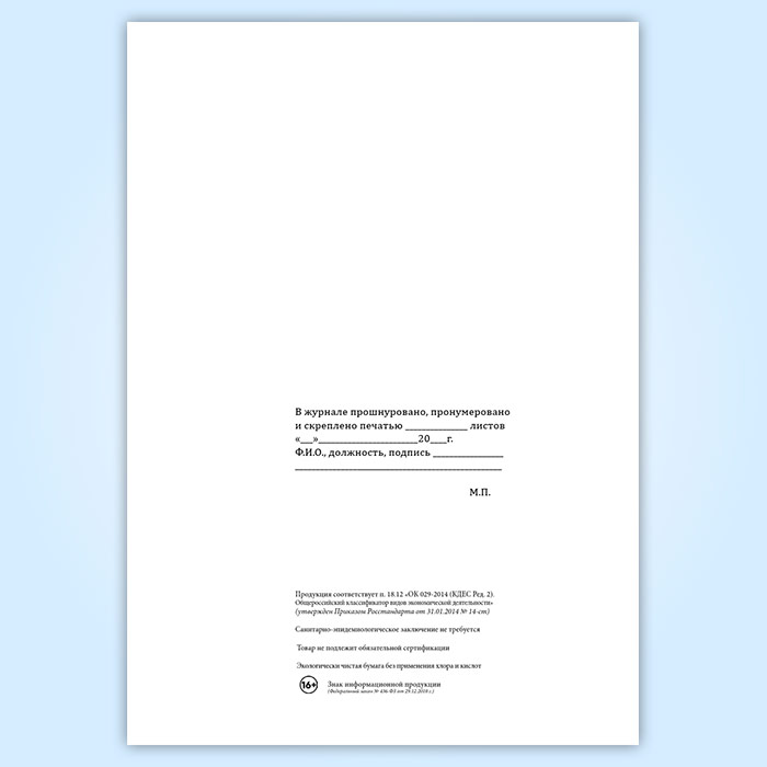 Вы получаете печатную продукцию прошнурованной и c местом для вашей печати в соответствии с действующими нормативными документами: