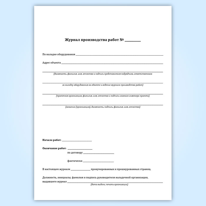 Журнал производства работ по наладке оборудования на объекте (СП 245.1325800.2015) в Сочи купить