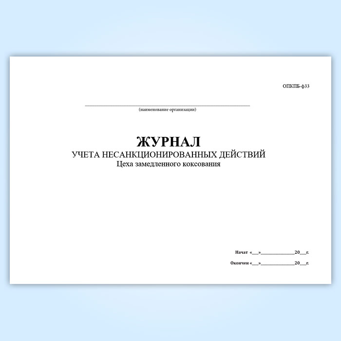 Журнал учета несанкционированных действий цеха замедленного коксования (ОПКПБ-ф33) в Сочи купить