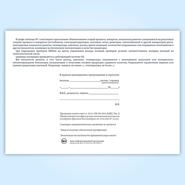 Журнал «Нормы технологического режима для непрерывных и периодических процессов» в Сочи купить