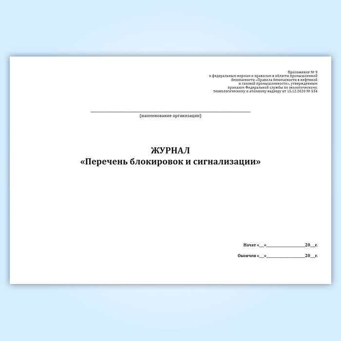 Журнал «Перечень блокировок и сигнализации» в Сочи купить