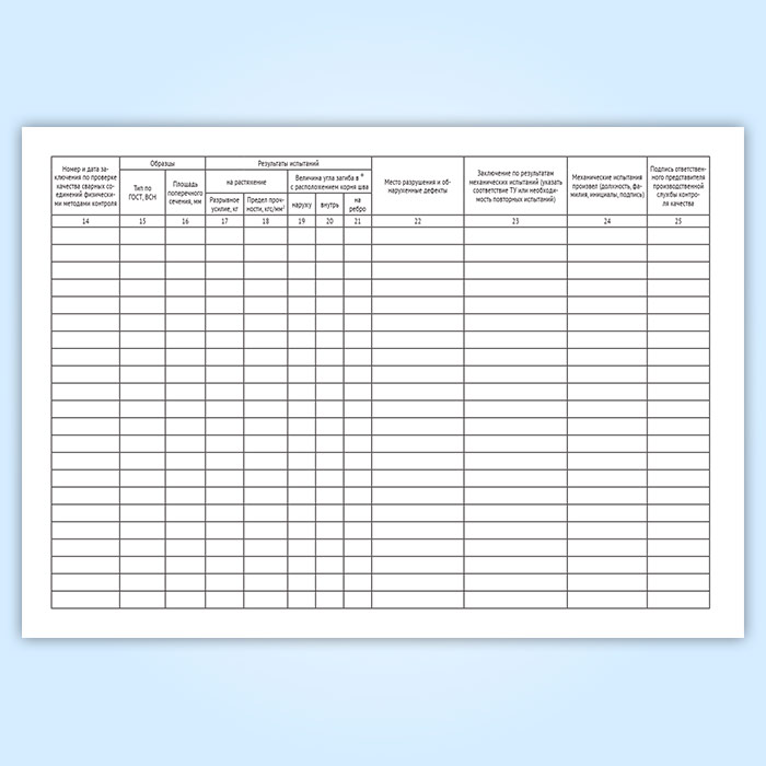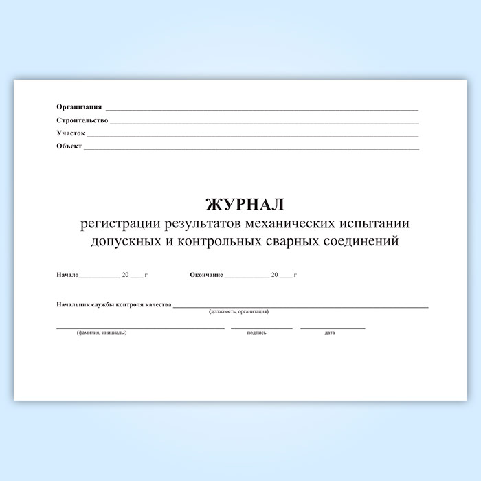 Журнал регистрации результатов механических испытаний допускных и контрольных сварных соединений в Сочи купить