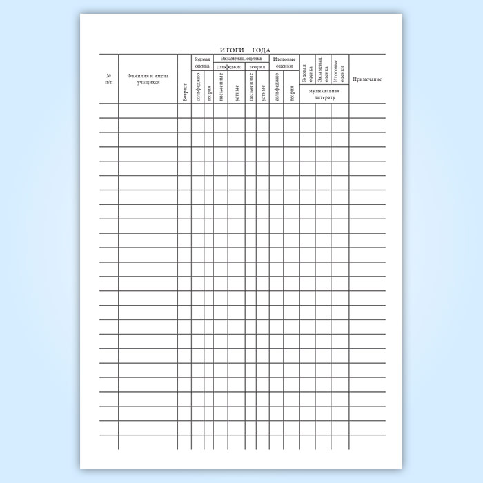 Журнал посещаемости и успеваемости учеников музыкальной школы (групповые занятия) в Сочи купить