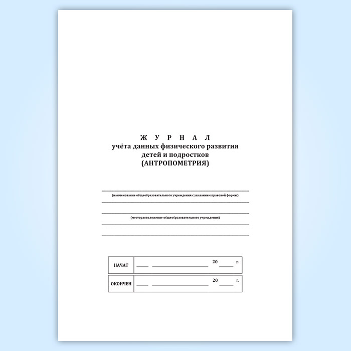 Журнал учета данных физического развития детей и подростков (антропометрия) в Сочи купить
