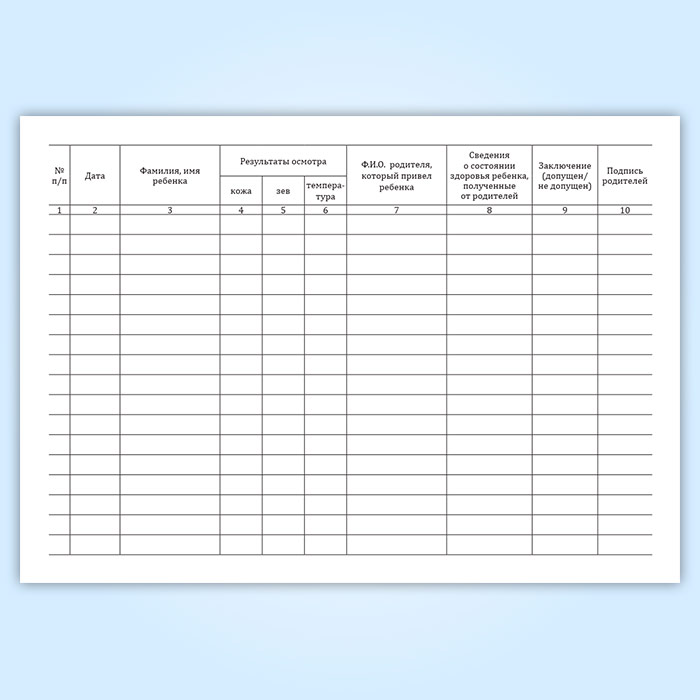 Журнал утреннего фильтра (осмотра) детей в Сочи купить