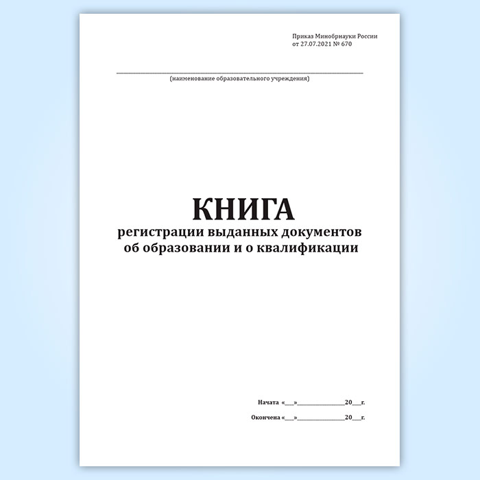 Книга регистрации выданных документов об образовании и о квалификации (Приказ Минобрнауки России от 27.07.2021 № 670) в Сочи купить