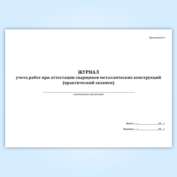 Журнал учета работ при аттестации сварщиков металлических конструкций (практический экзамен) в Сочи купить
