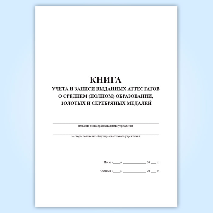 Книга учета и записи выданных аттестатов о среднем (полном) образовании, золотых и серебряных медалей в Сочи купить