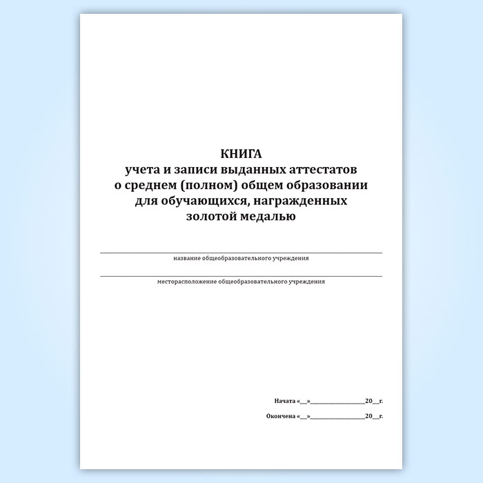Книга учета и записи выданных аттестатов о среднем (полном) общем образовании для обучающихся, награжденных золотой медалью в Сочи купить