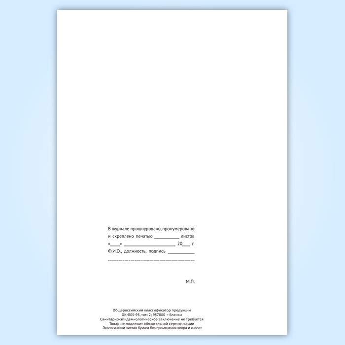 Вы получаете печатную продукцию прошнурованной и c местом для вашей печати в соответствии с действующими нормативными документами: