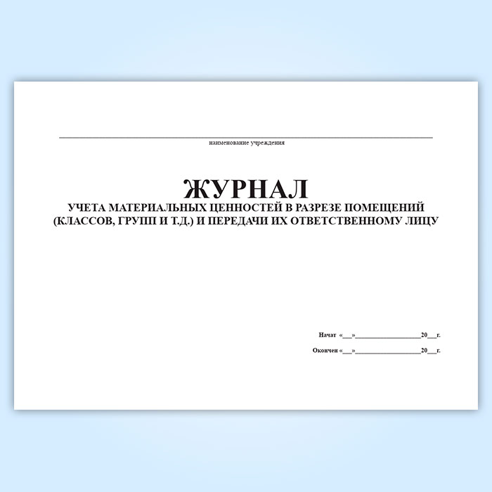 Журнал учета материальных ценностей в разрезе помещений (классов, групп и т.д.) и передачи их ответственному лицу в Сочи купить