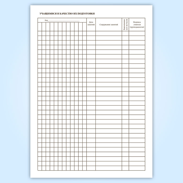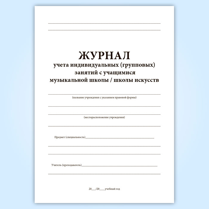 Журнал учета индивидуальных (групповых) занятий с учащимися музыкальной школы, школы искусств в Сочи купить
