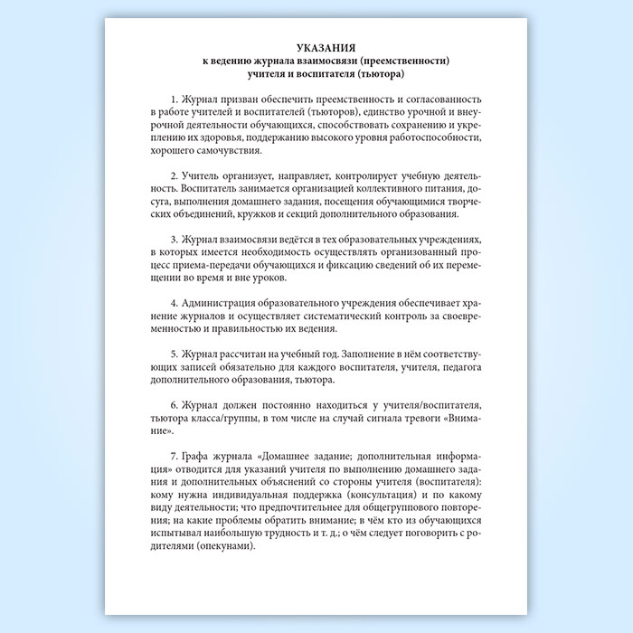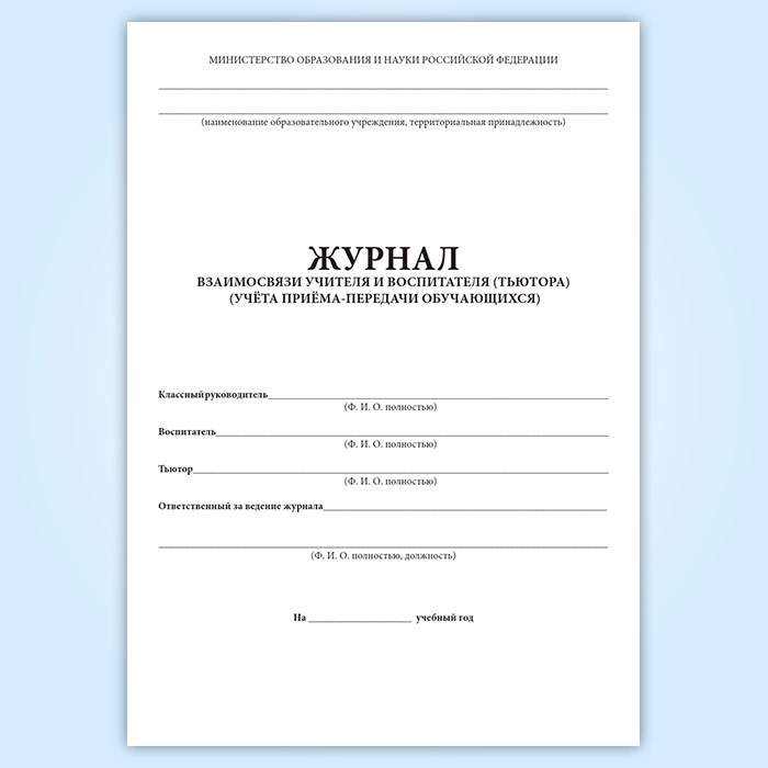 Журнал взаимосвязи учителя и воспитателя (тьютора) (учета-передачи учащихся) в Сочи купить