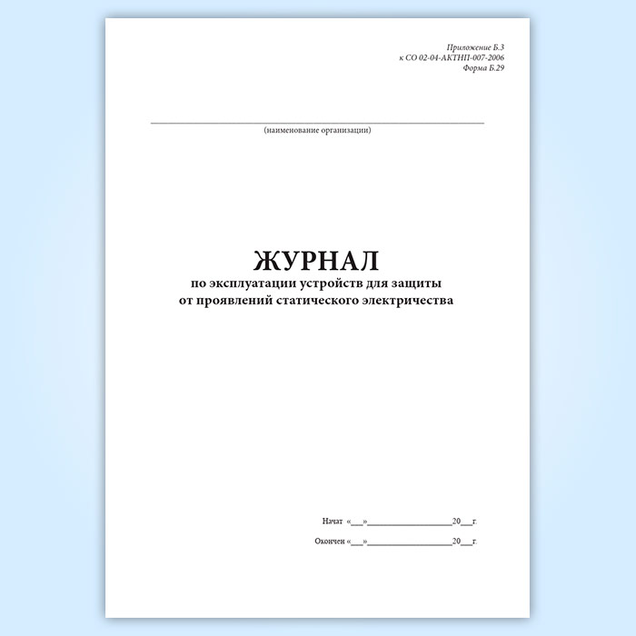 Журнал по эксплуатации устройств для защиты от проявлений статического электричества (форма Б.29) в Сочи купить
