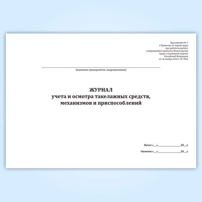 Журнал учета и осмотра такелажных средств, механизмов и приспособлений (Приказ Минтруда России от 16.11.2020 N 782н) в Сочи купить