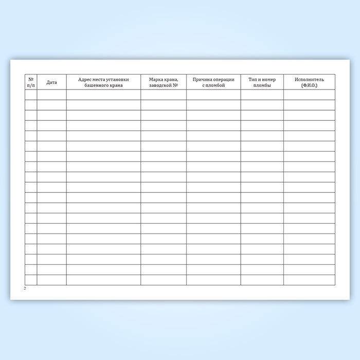 Журнал запирания и опломбирования защитных панелей башенных кранов в Сочи купить