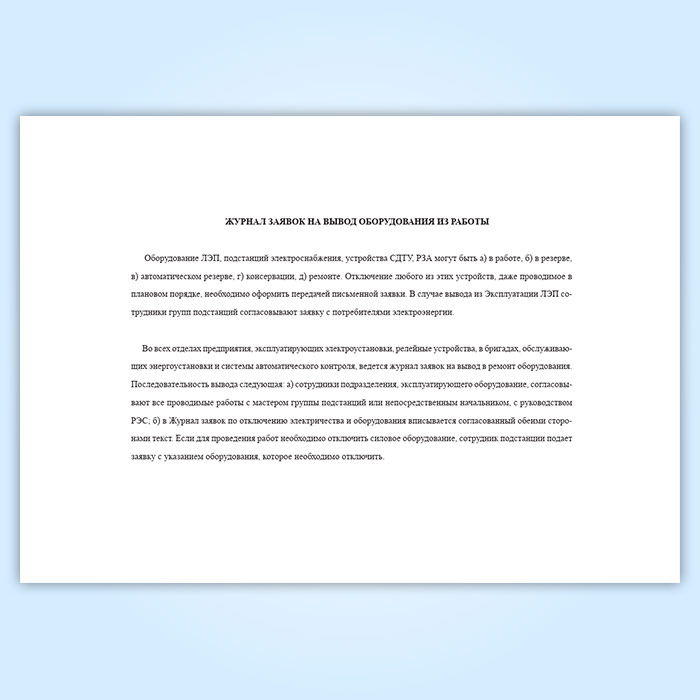Журнал заявок на вывод оборудования из работы в Сочи купить
