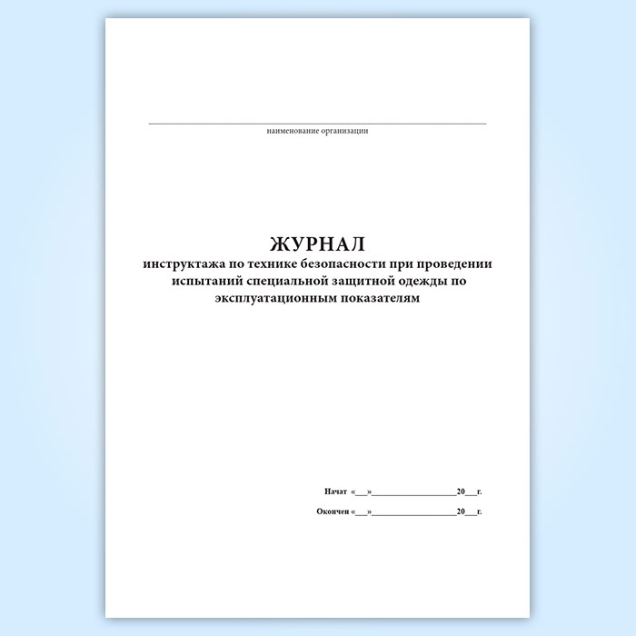 Журнал инструктажа по технике безопасности при проведении испытаний специальной защитной одежды по эксплуатационным показателям в Сочи купить