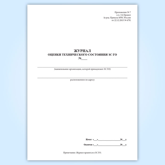 Журнал оценки технического состояния ЗС ГО в Сочи купить