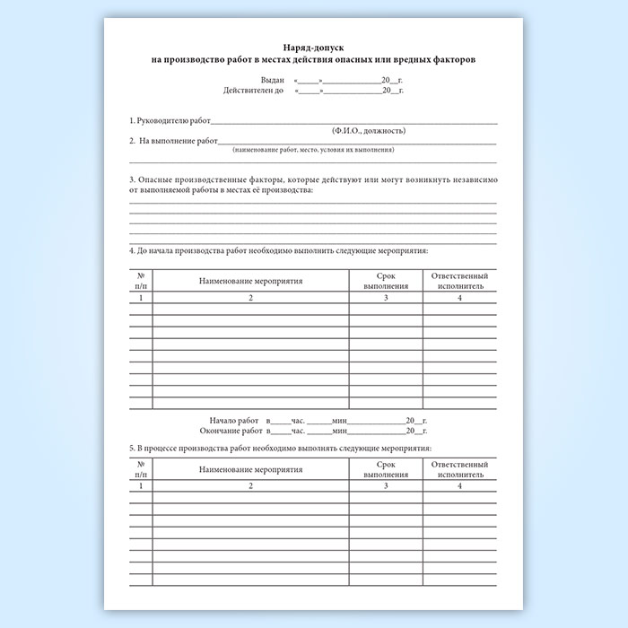 Книга наряд-допусков на производство работ в местах действия опасных или вредных факторов в Сочи купить