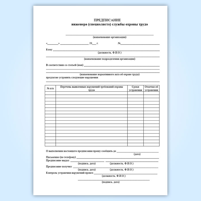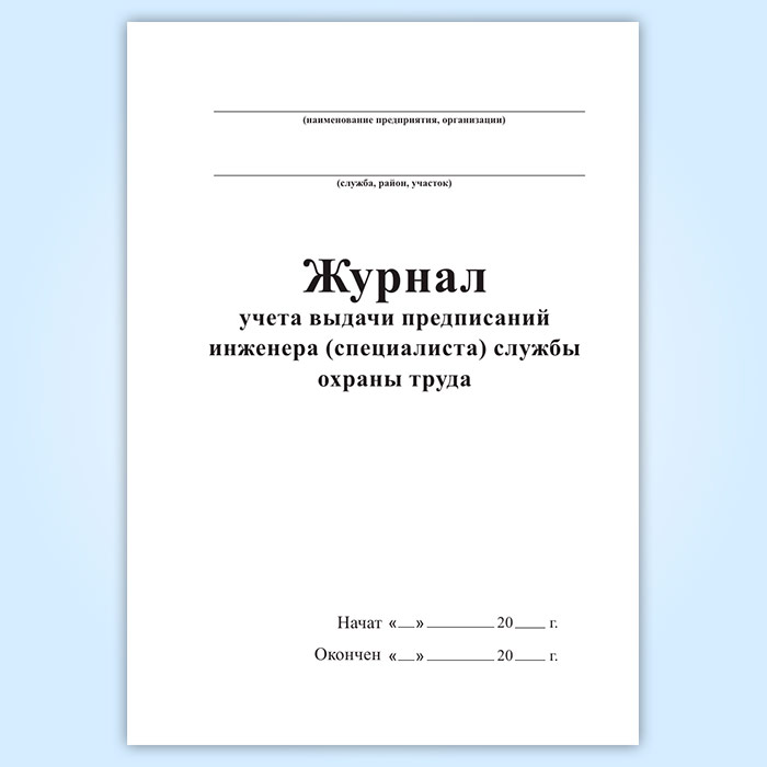 Журнал учета выдачи предписаний инженера (специалиста) службы охраны труда в Сочи купить