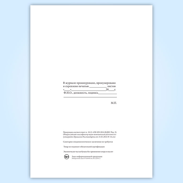 Вы получаете печатную продукцию прошнурованной и c местом для вашей печати в соответствии с действующими нормативными документами: