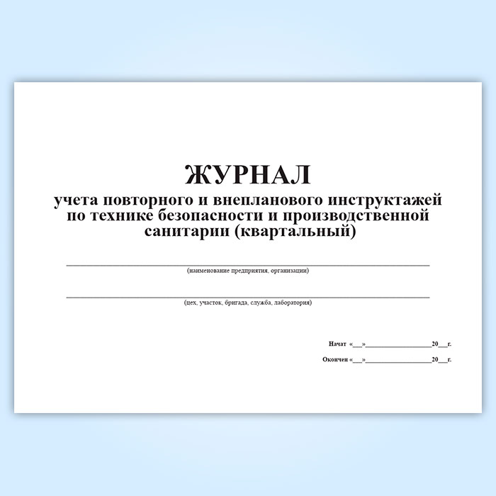 Журнал учета повторного и внепланового инструктажей по технике безопасности и производственной санитарии (квартальный) в Сочи купить