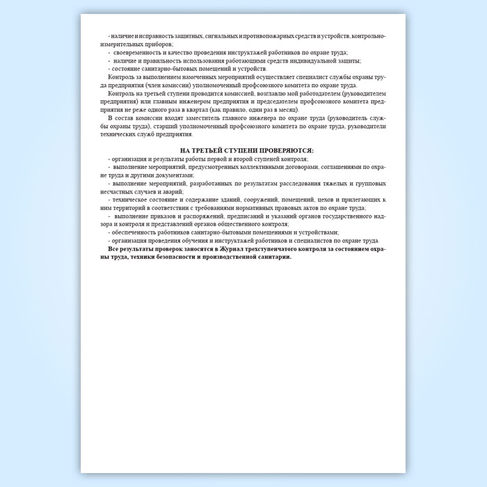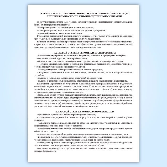 Журнал трехступенчатого контроля за состоянием охраны труда, техники безопасности и производственной санитарии 1 и 2 ступени в Сочи купить