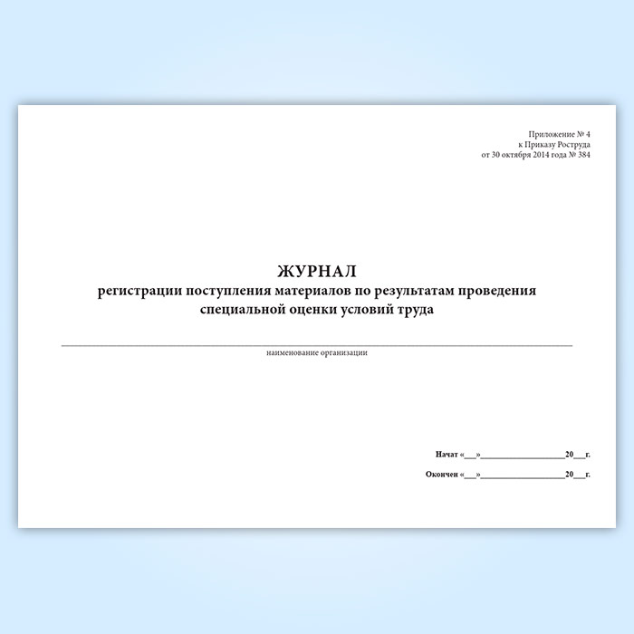 Журнал регистрации поступления материалов по результатам проведения специальной оценки условий труда в Сочи купить