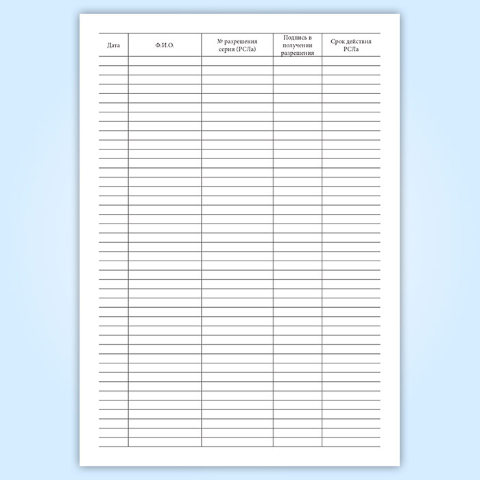 Журнал регистрации и выдачи поступающих разрешений на хранение и ношение огнестрельного оружия (РСЛа) в Сочи купить