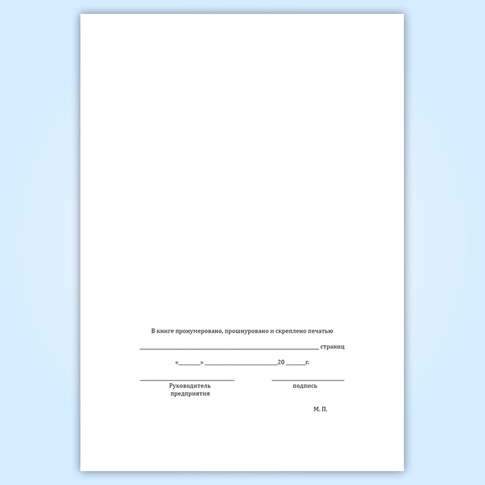 Вы получаете печатную продукцию прошнурованной и c местом для вашей печати в соответствии с действующими нормативными документами: