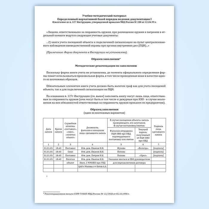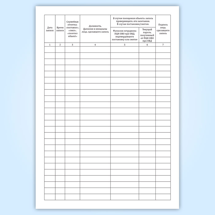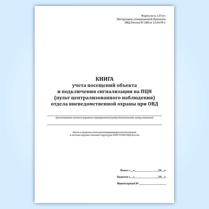 Книга учета посещений объекта и подключения сигнализации на ПЦН (пульт централизованного наблюдения) отдела вневедомственной охраны при ОВД (форма 127 г) в Сочи купить