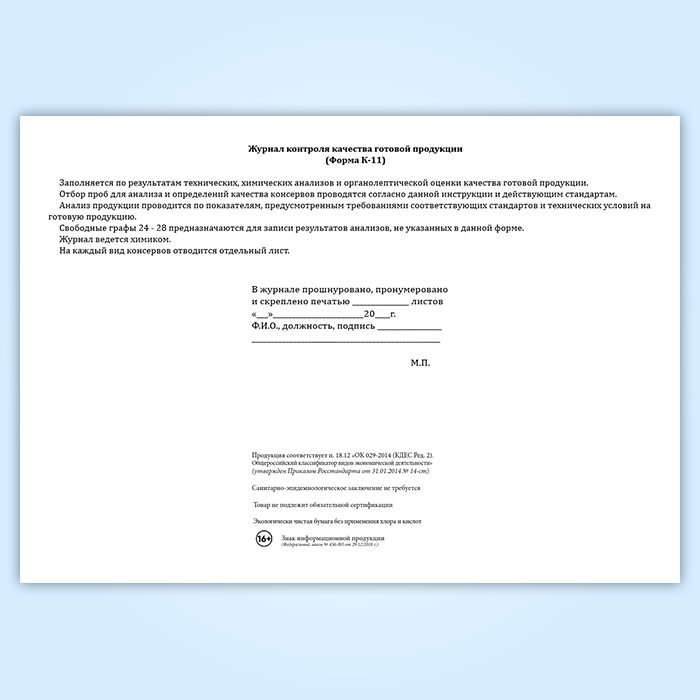 Журнал контроля качества готовой продукции (форма К-11) в Сочи купить