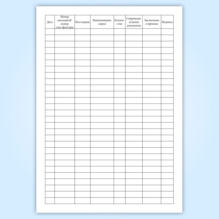 Журнал приемки пищевых компонентов, упаковочных материалов в Сочи купить