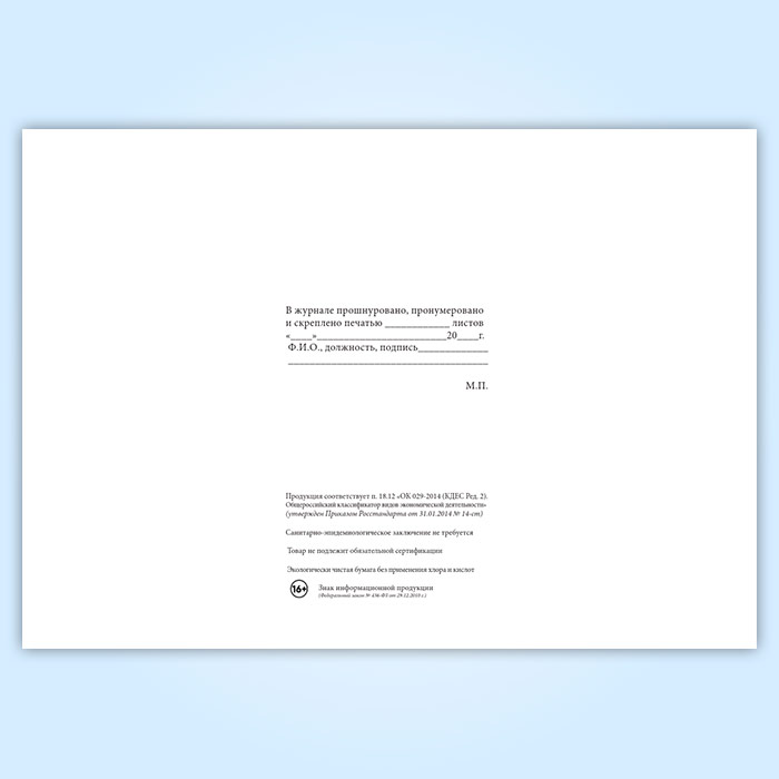 Вы получаете печатную продукцию прошнурованной и c местом для вашей печати в соответствии с действующими нормативными документами: