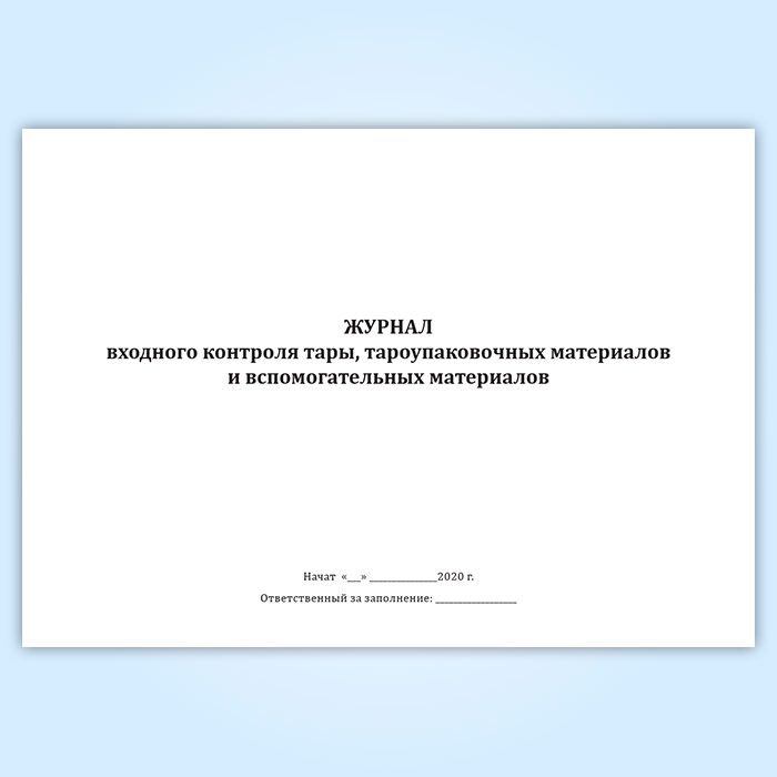 Журнал входного контроля тары, тароупаковочных материалов и вспомогательных материалов в Сочи купить