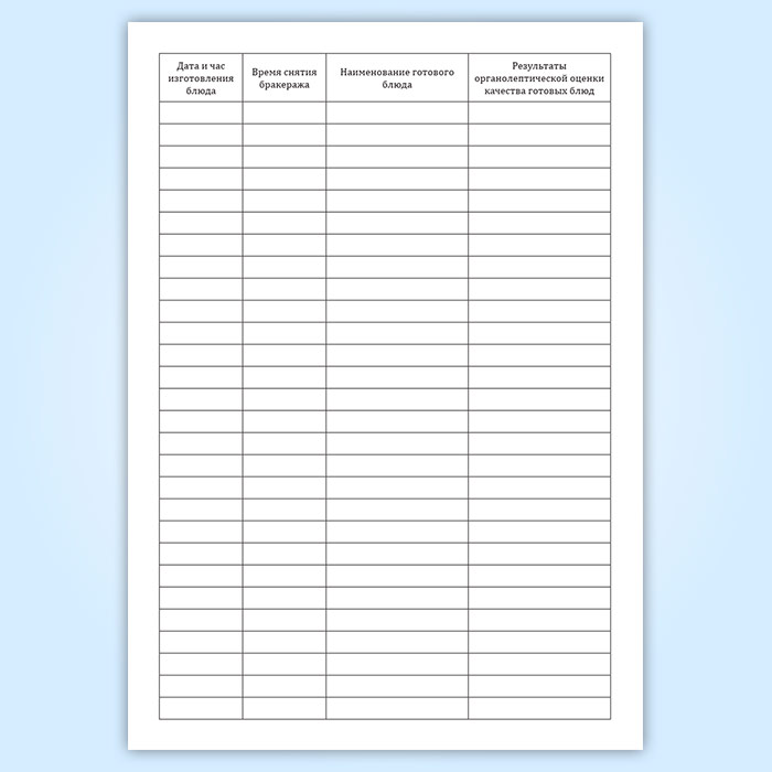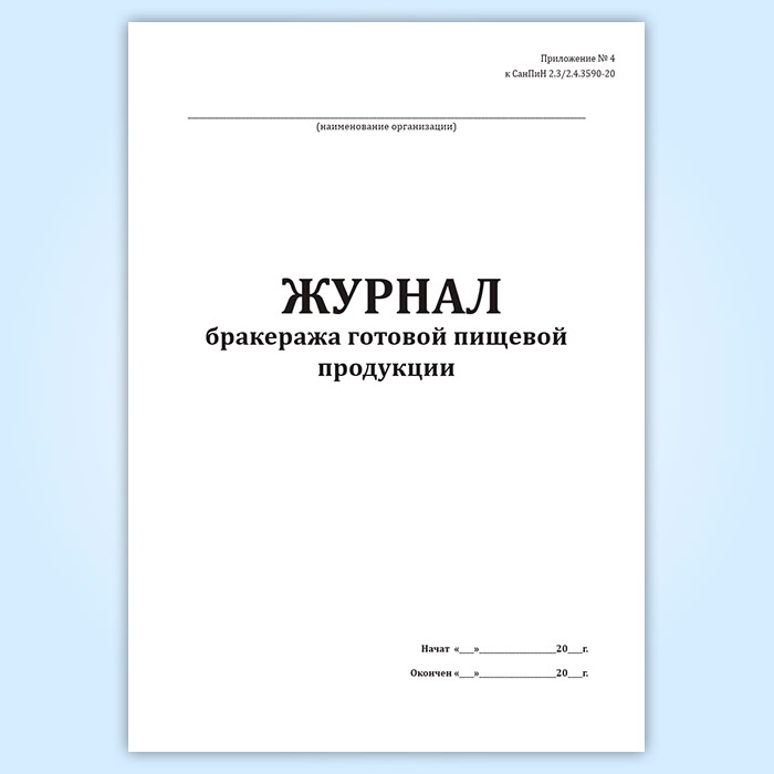 Журнал бракеража готовой пищевой продукции (СанПиН 2.3/2.4.3590-20) в Сочи купить
