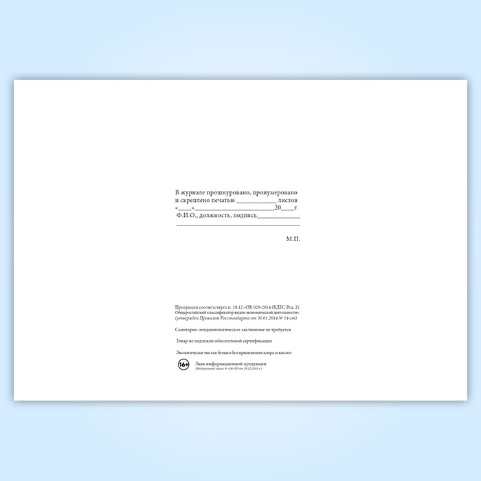 Вы получаете печатную продукцию прошнурованной и c местом для вашей печати в соответствии с действующими нормативными документами:
