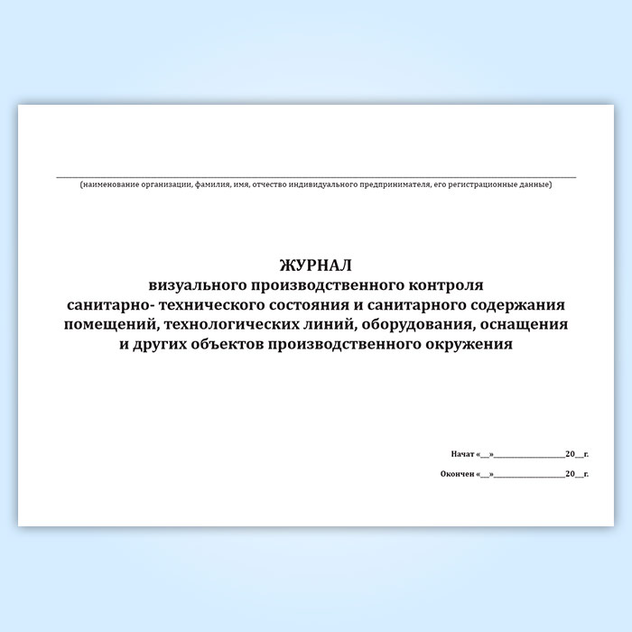 Журнал визуального производственного контроля санитарно-технического состояния и санитарного содержания помещений, технологических линий, оборудования, оснащения и других объектов производственного окружения в Сочи купить