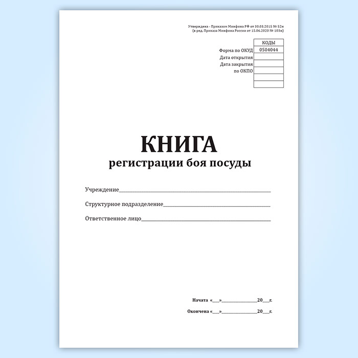 Книга регистрации боя посуды (форма по ОКУД 0504044) в Сочи купить