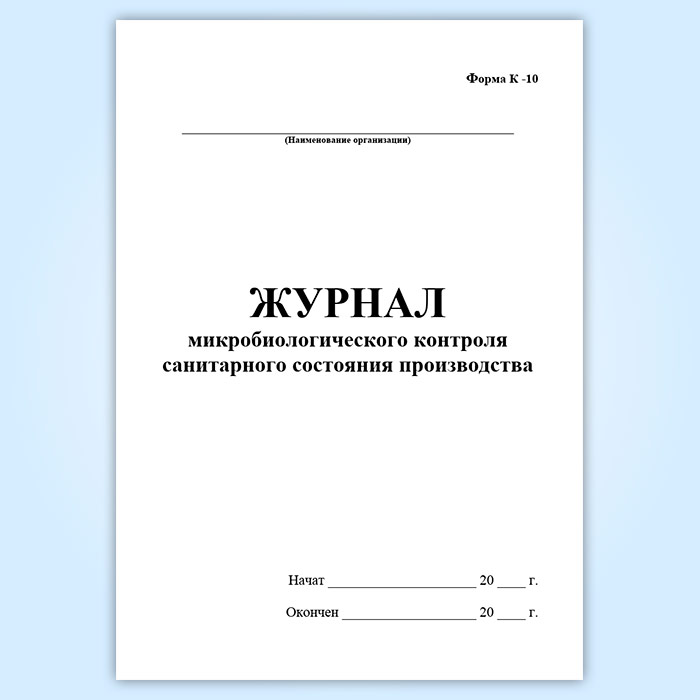 Журнал микробиологического контроля санитарного состояния производства (форма К-10) в Сочи купить