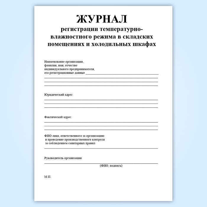 Журнал регистрации температурно-влажностного режима в складских помещениях и холодильных шкафах в Сочи купить